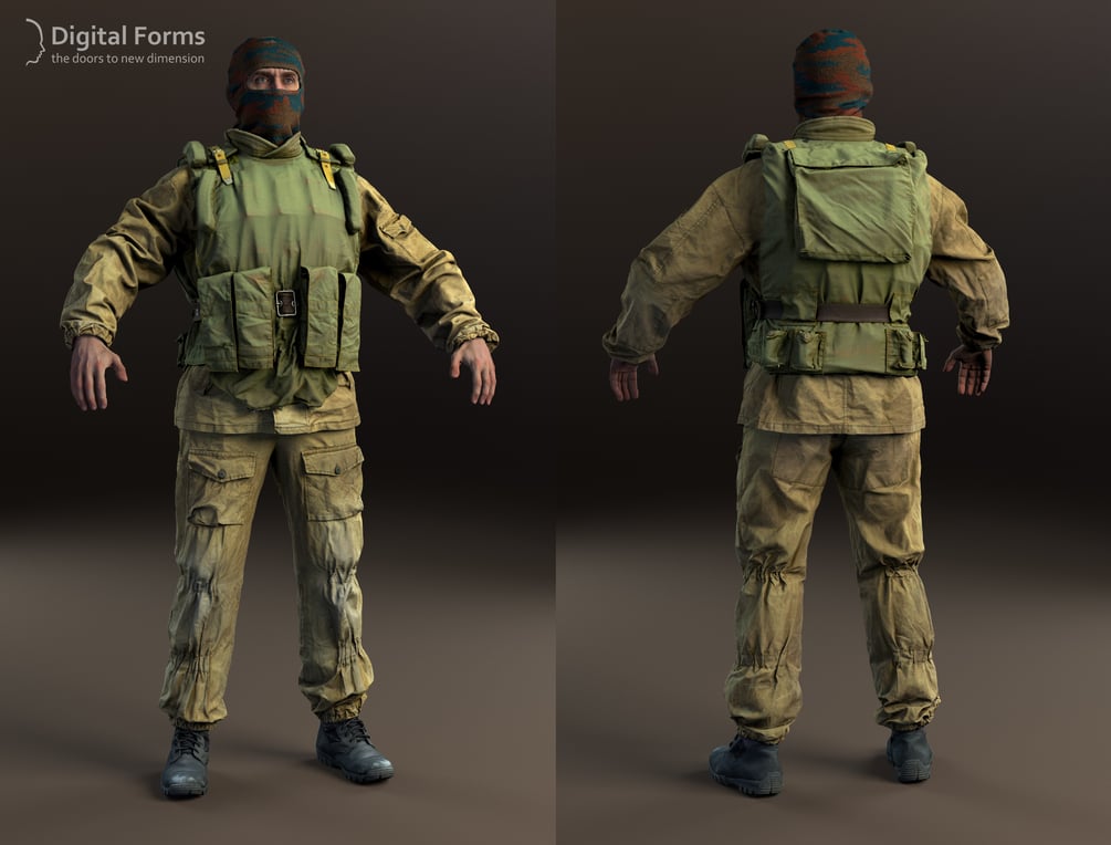 This pack contains RAW 3d scan data of Russian army uniform and equipment of the midle 90th.